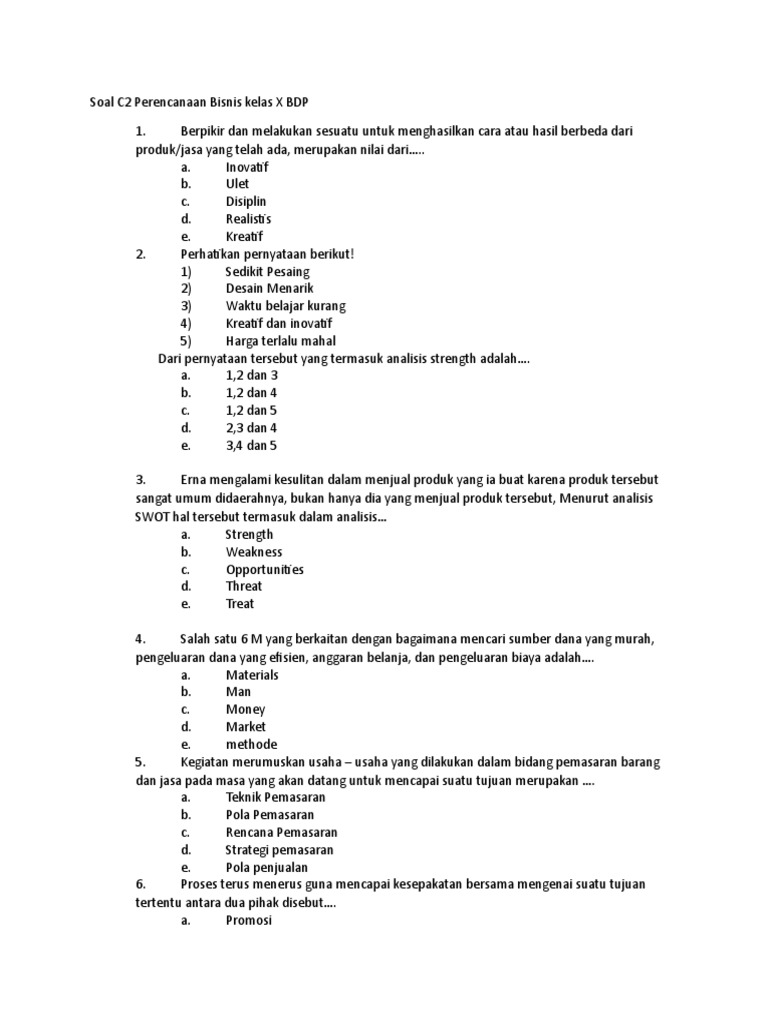 Soal Komunikasi Bisnis Smk Bismen Paket A Pdf from imgv2-2-f.scribdassets.com Maybe you would like to learn more about one of these? Soal pilihan ganda marketing kelas 10 smk. We did not find results for: Check spelling or type a new query.